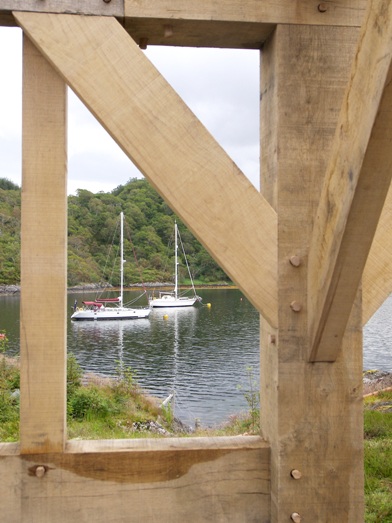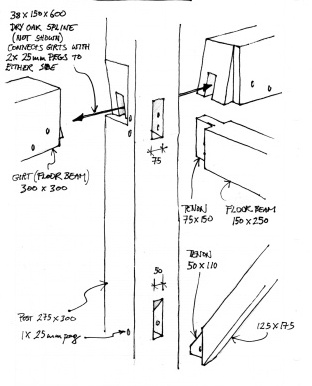 This pulling together of the joints in the frame makes for a much more rigid structure and helps to mitigate some of the problems associated with the movement and shrinkage of the green timbers.